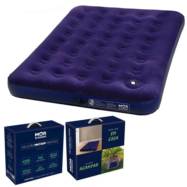 Material: vinil (PVC) resistente, com revestimento superior aveludado para conforto e melhor aderência do lençol. Inflador incorporado: têm “fole” ou inflador embutido para facilitar o enchimento rápido.