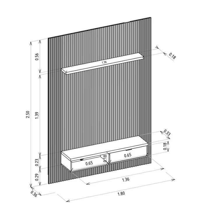 Com largura de 1,80 m, é adequado para salas de estar de tamanho médio a grande ou para quem quer que o painel seja uma peça de destaque na parede.