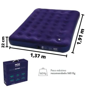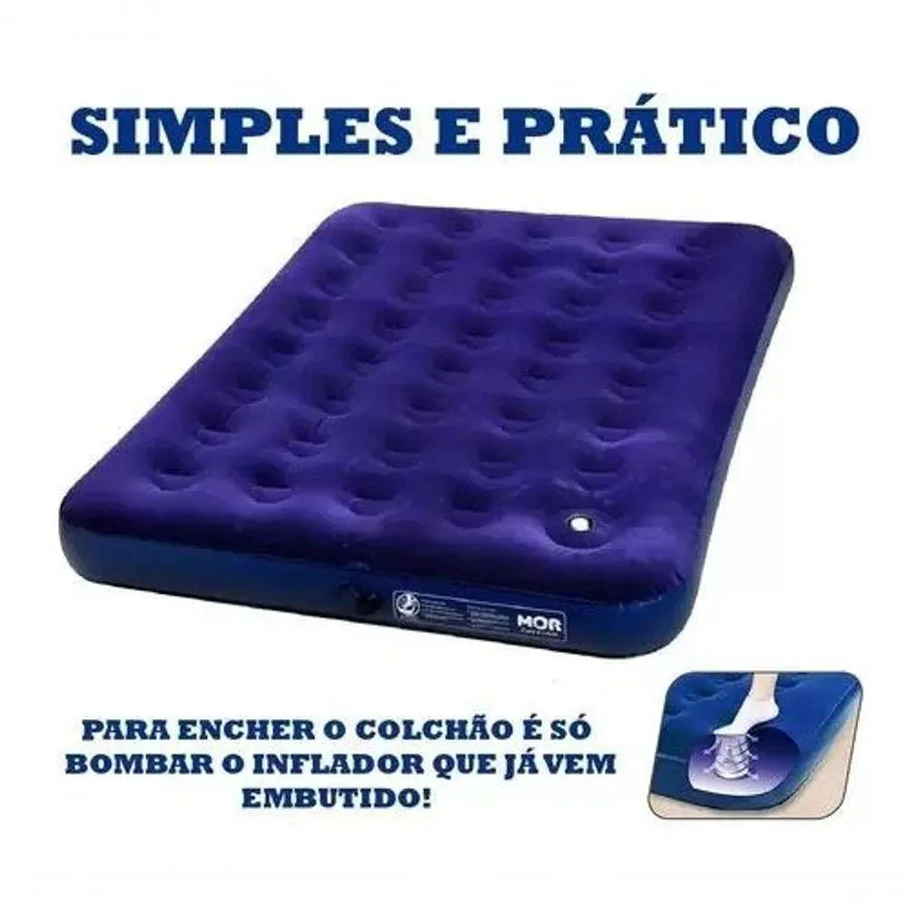 Material: vinil (PVC) resistente, com revestimento superior aveludado para conforto e melhor aderência do lençol. Inflador incorporado: têm “fole” ou inflador embutido para facilitar o enchimento rápido.