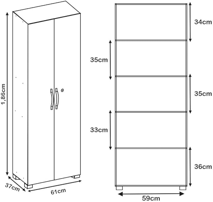 4 prateleiras internas espaçosas, perfeitas para guardar roupas, calçados, documentos, produtos de limpeza e muito mais.